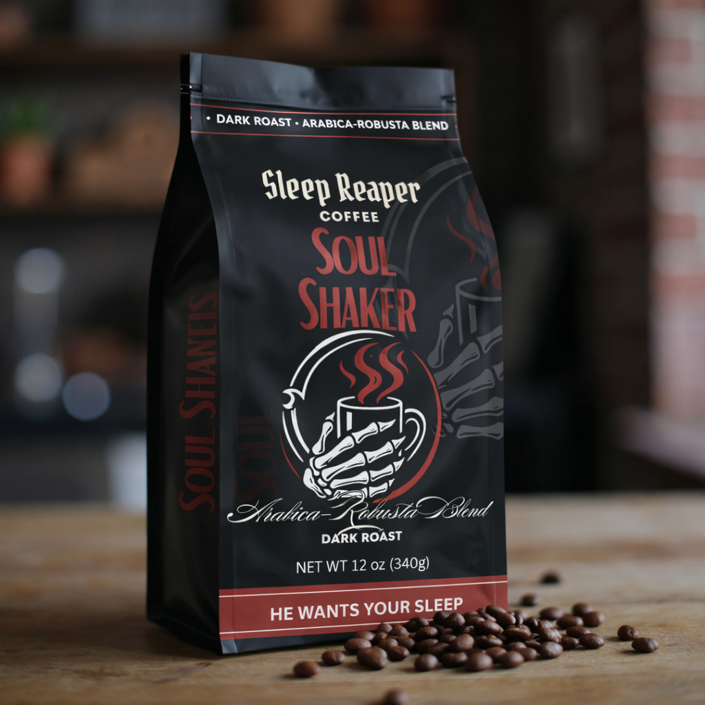 The Reaper’s first brew. Forged in fire and brewed in darkness, Soul Shaker combines the strength of the damned with the smoothness of a final prayer. Experience unholy boldness and relentless wakefulness. Every sip is a sacrifice, and every cup a covenant.